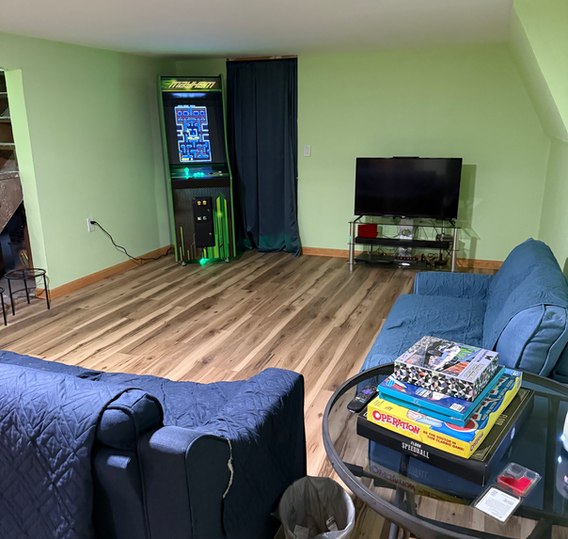 The basement boasts a gym with a treadmill, stationary bike, inversion table, weights, and sauna as well as an entertainment area complete with an arcade, gaming systems, and many other classic games.